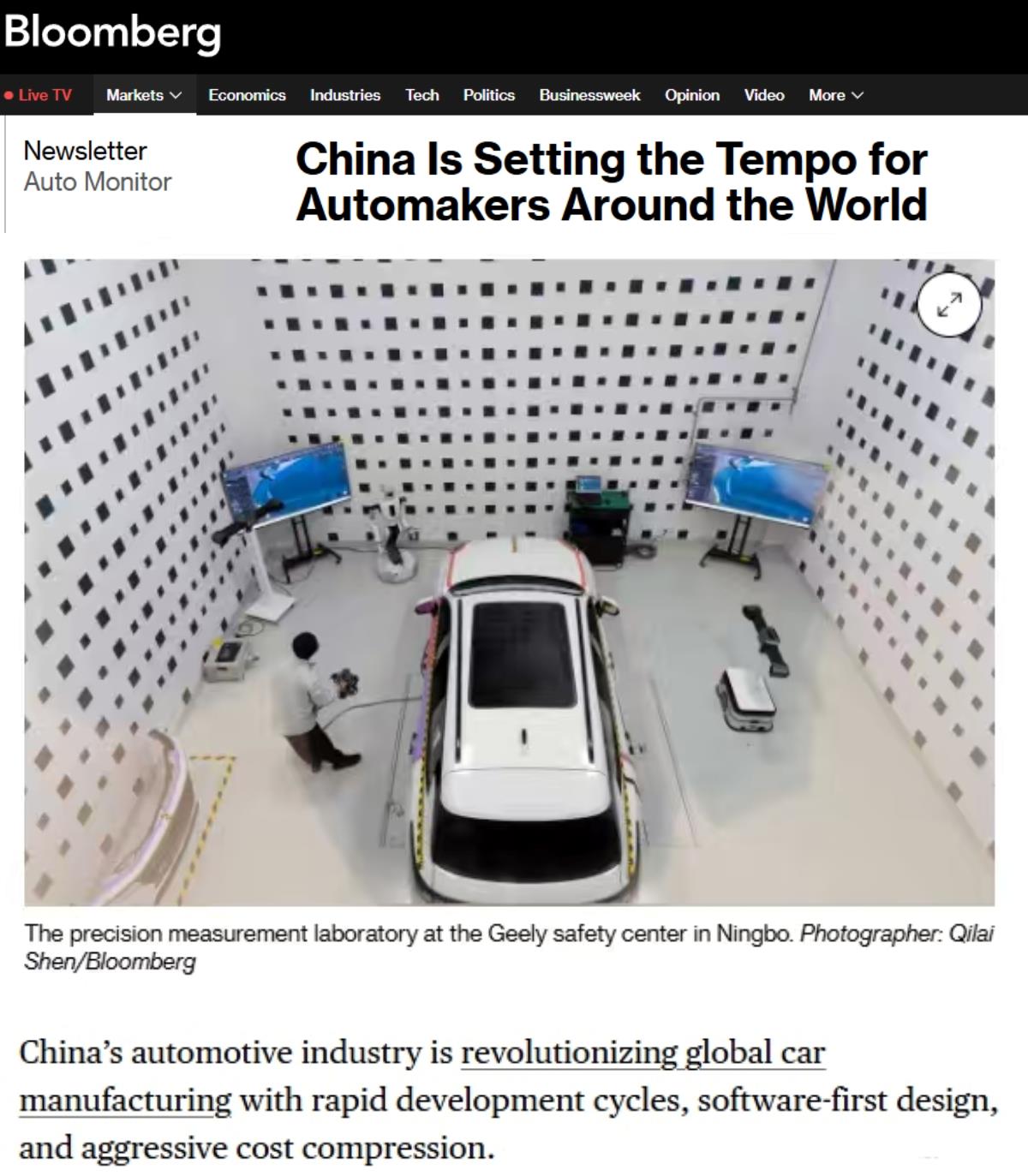 Në artikull vihet në dukje që “shpejtësia kineze” është bërë një standard i ri në industrinë globale të automjeteve. Për shembull, prodhuesit kinezë të automjeteve po rishkruajnë rregullat e industrisë: cikle më të shkurtra zhvillimi, zinxhirë furnizimi të integruar thellësisht, risi të guximshme dhe përditësime në kohë reale të funksioneve të makinave nëpërmjet “teknologjisë mbi ajër” (OTA). Prodhuesit tradicionalë të automjeteve, veçanërisht ata evropianë, po e konsiderojnë bashkëpunimin si një mënyrë të rëndësishme për të ecur me hapin e prodhuesve kinezë.