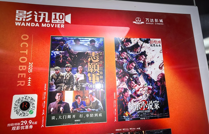 Deri tani, për vlerën e shitjes së biletave gjatë Ditës Kombëtare të këtij viti kryesojnë filmi epik kinez me luftë “Vullnetarët: Paqe më në fund”, i fundit i trilogjisë “Vullnetarët” të regjisorit Chen Kaige. Filmi rikrijon ndërthurjen e luftimeve në fushëbetejë me negociatat e tensionuara diplomatike gjatë Luftës së Rezistencës ndaj Agresionit Amerikan dhe Ndihmës për Korenë (1950-1953).